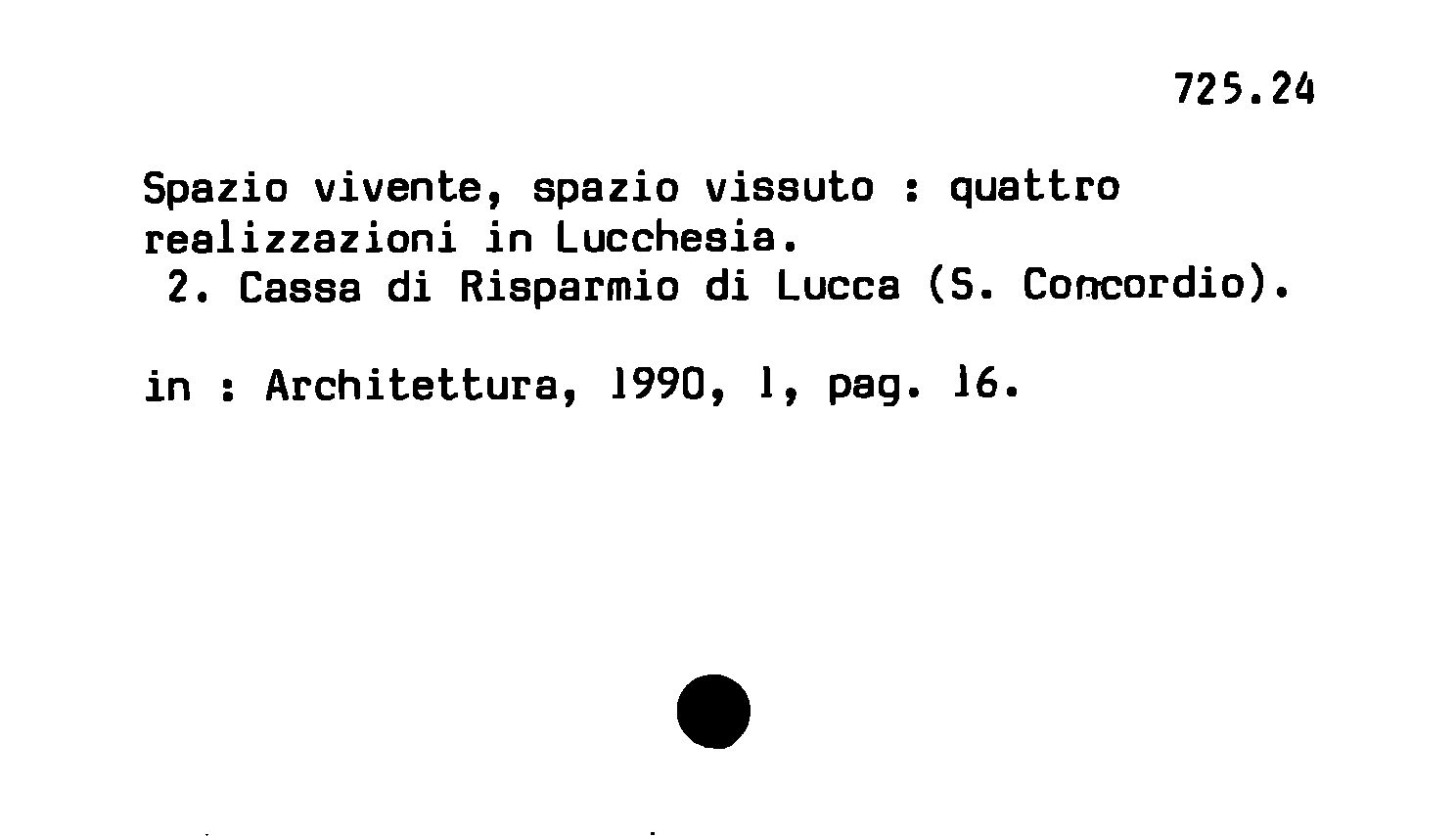 - Spazio vivente, spazio vissuto : quattro realizzazioni in Lucchesia ; 2. Cassa di Risparmio di Lucca (S. Concordio)