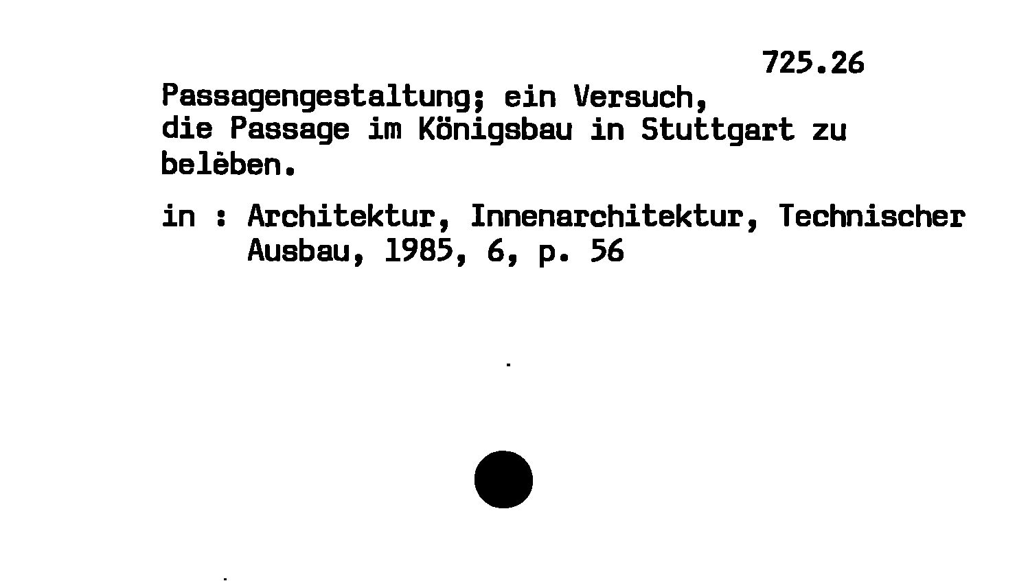 - Passagengestaltung : ein Versuch, die Passage im Königsbau in Stuttgart zu beleben