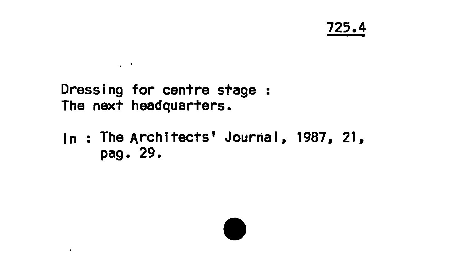 Dressing for centre stage : The next headquarters
