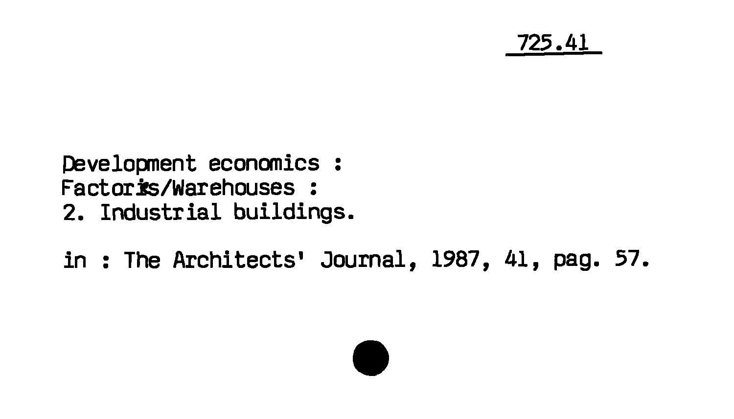 - Development economics : Factories/Warehouses ; 2. Industrial buildings