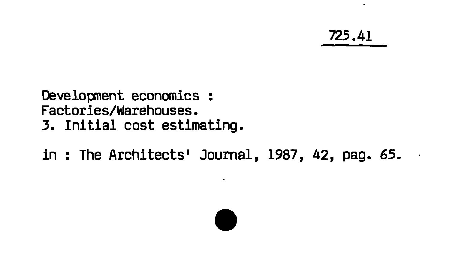 Development economics : Factories/Warehouses ; 3. Initial cost estimating