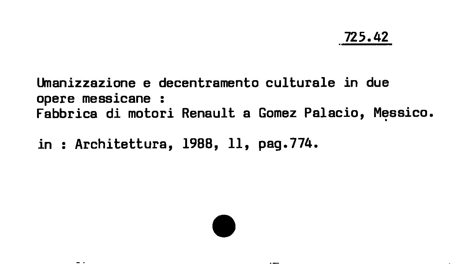- Umanizzazione e decentramento culturale in due opere messicane : Fabbrica di motori Renault a Gomez Palacio, Messico