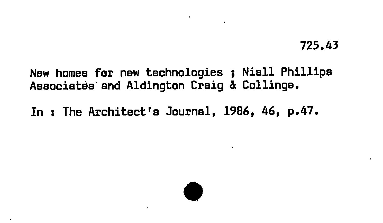 New homes for new technologies : Naill Phillips Associates and Aldington Craig & Collinge