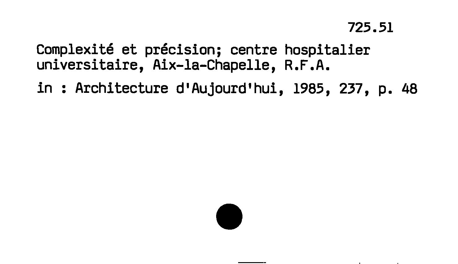 - Complexité et précision : centre hospitalier universitaire, Aix-la-Chapelle, R.F.A