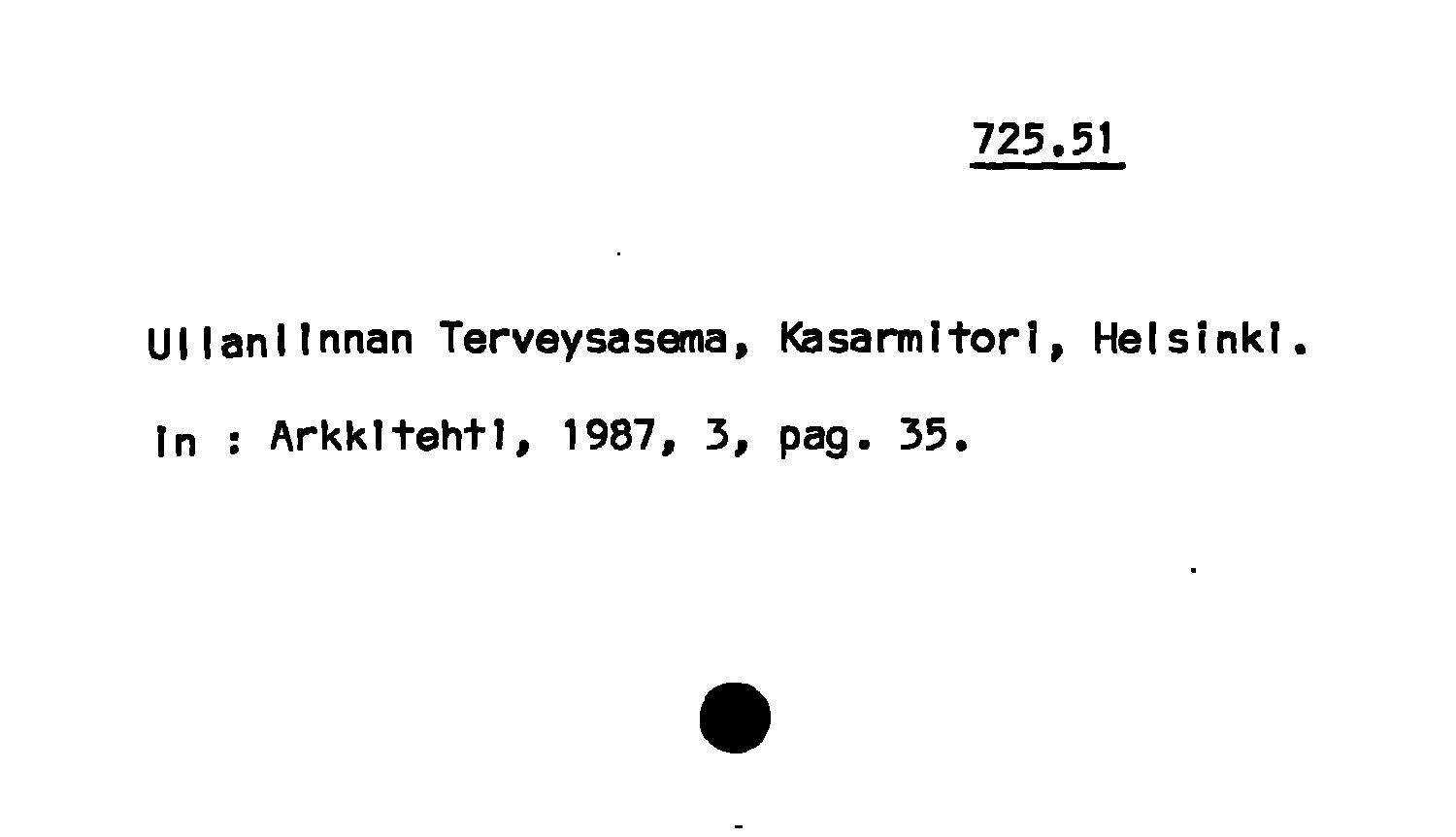 - Ullanlinnan Terveysasema, Kasarmitori, Helsinki