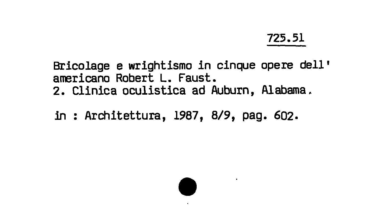 - Bricolage e wrightismo in cinque opere dell'americano Robert L. Faust : 2. Clinica oculistica ad Auburn, Alabama