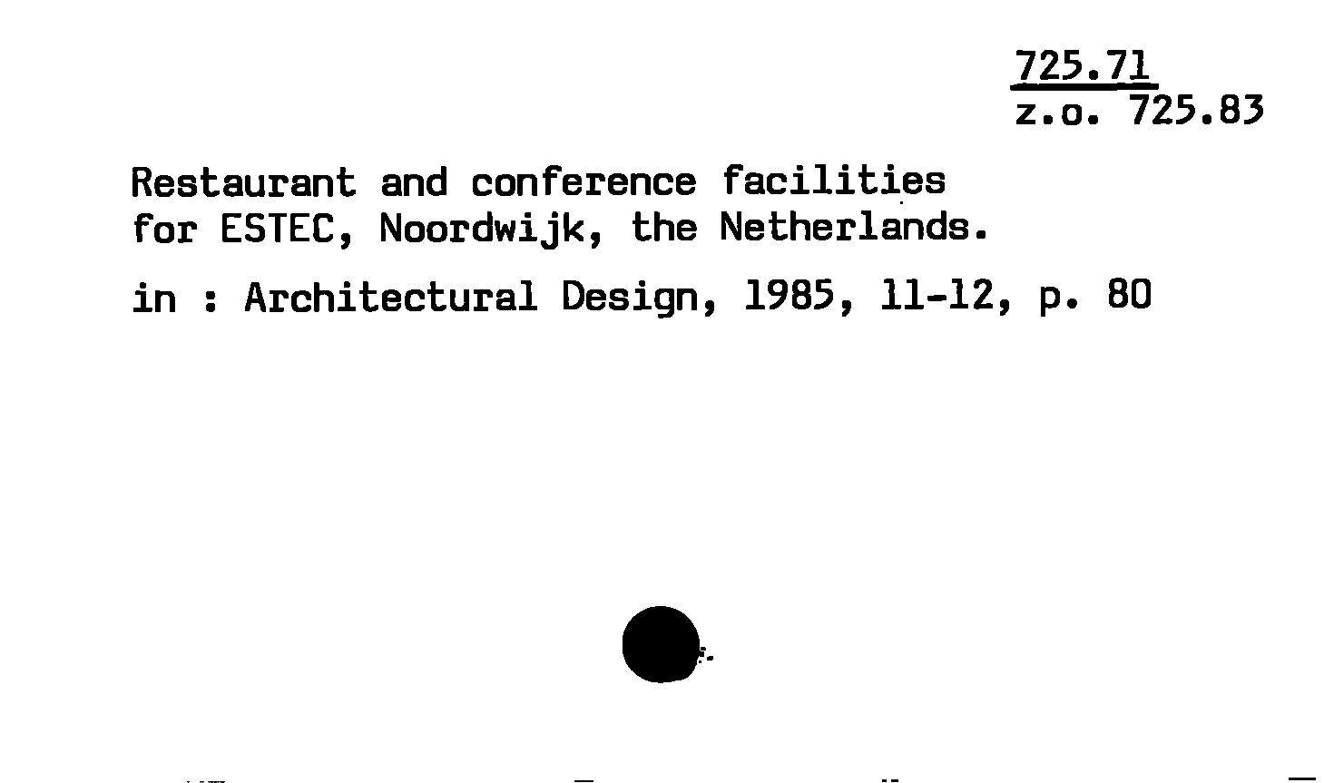 - Restaurant and conference facilities for ESTEC, Noordwijk, the Netherlands