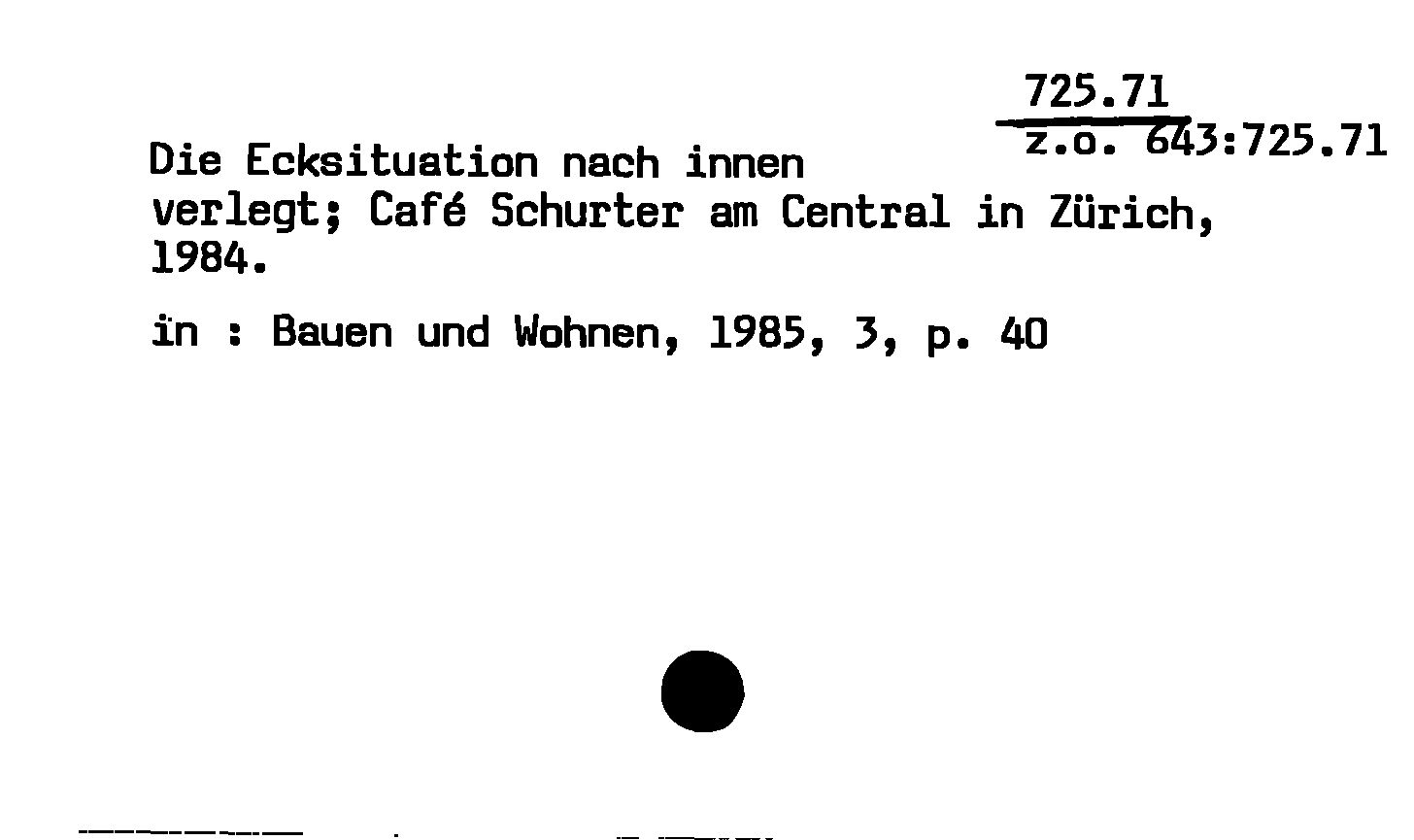 - Die Ecksituation nach innen verlgt : Café Schurter am Central in Zürich, 1984