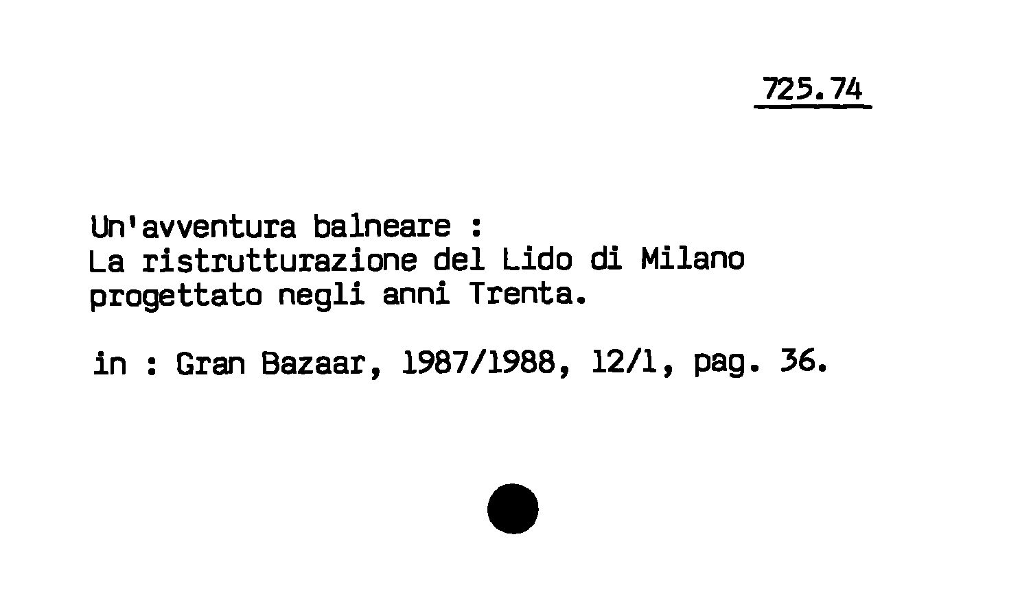 - Un'avventura balneare : La ristrutturazione del Lido di Milano progettato negli anni Trenta