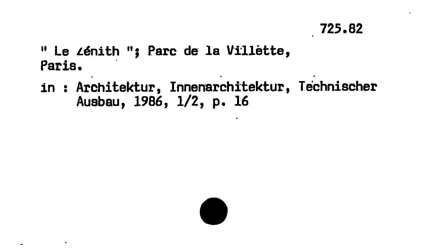 - "Le zénith" : Parc de la Villette, Paris