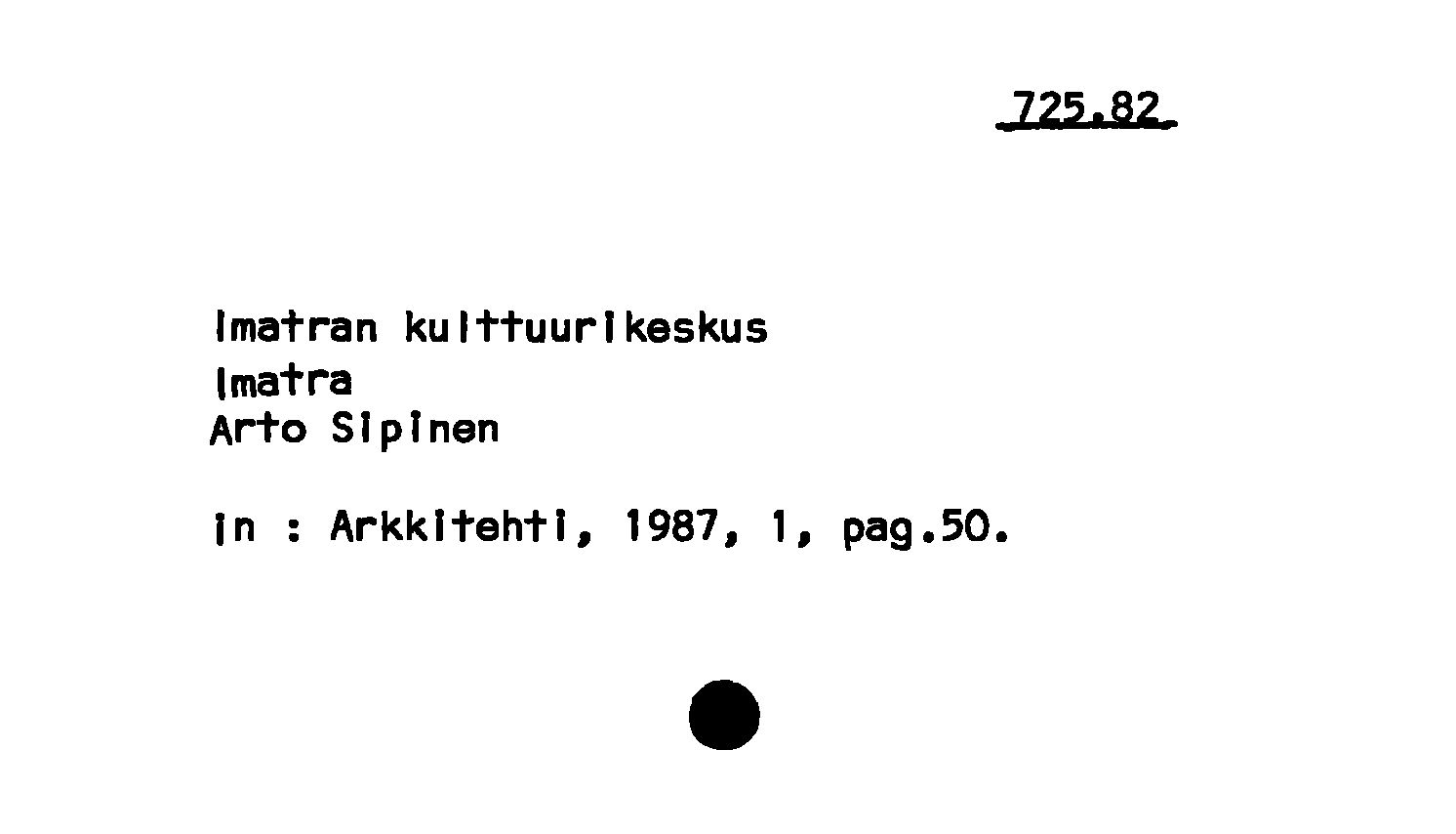 - Imatran kulttuurikeskus : Imatra ; Arto Sipinen