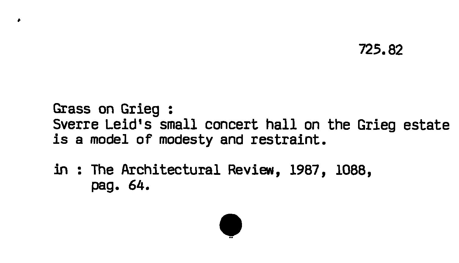 - Grass on Grieg : Sverre Leid's small concert hall on the Grieg estate is a model of modesty and restraint
