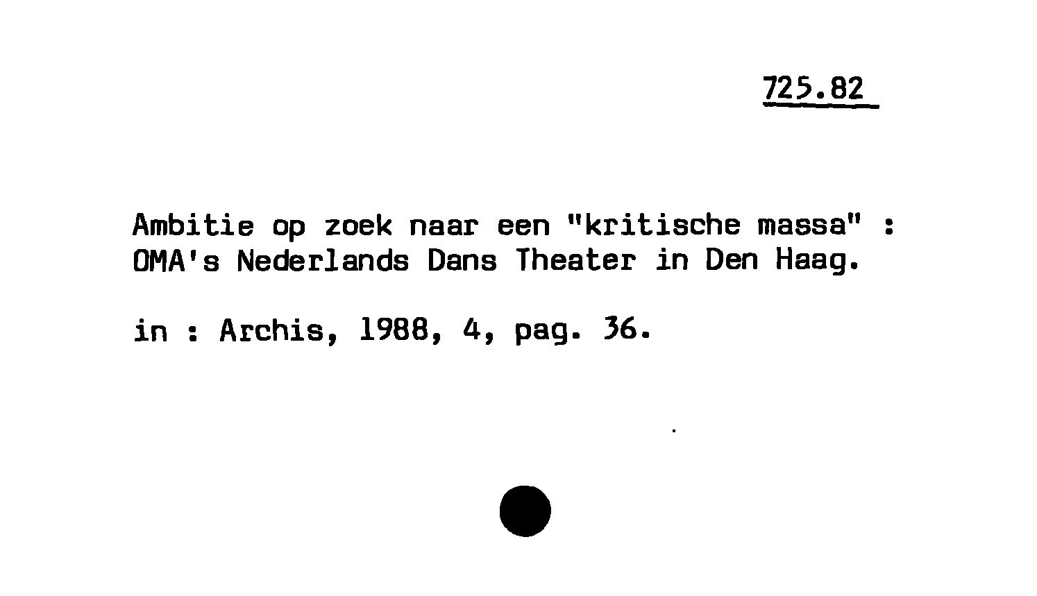 - Ambitie op zoek naar een "kritische massa" : OMA'S Nederlands Dans Theater in Den Haag