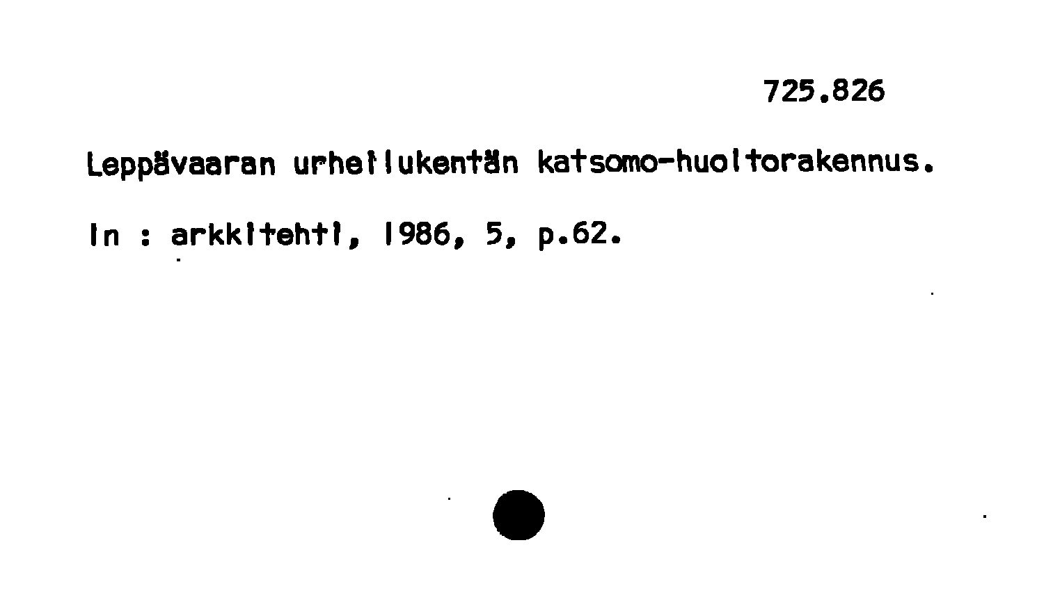 - Leppävaaran urheilukentän katsomo-huoltorakennus