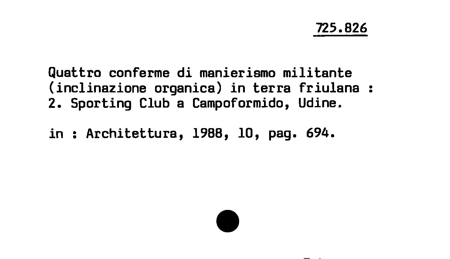 - Quattro conforme di manierismo militante (inclinazione organica) in terra friulana : 2. Sporting Club a Campoformido, Udine