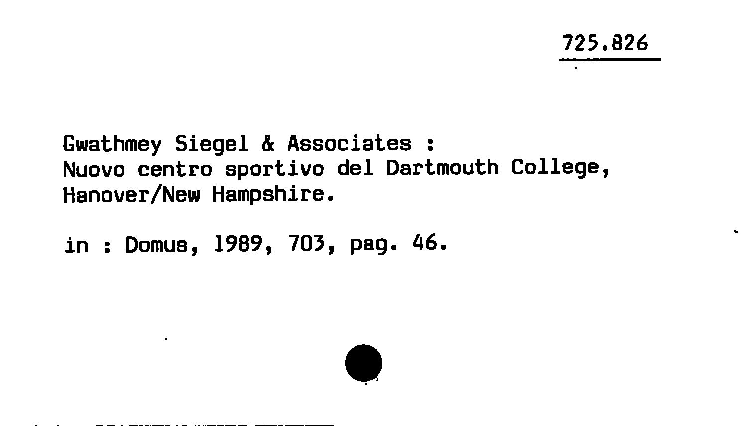- Gwathmey Siegel & Associates : Nuovo centro sportivo del Dartmouth College, Hanover/New Hampshire