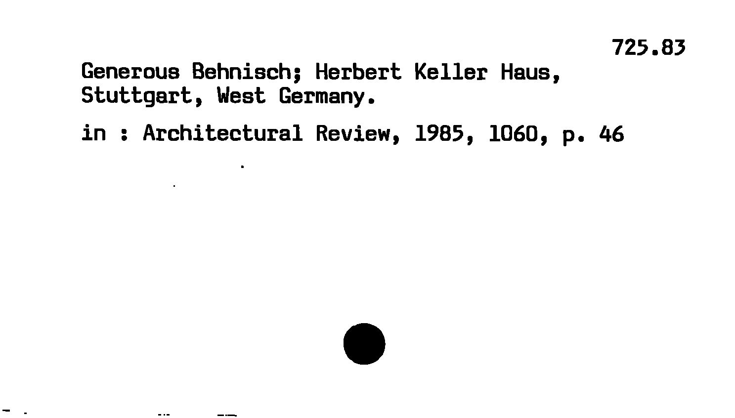 - Generous Behnisch : Herbert Keller Haus, Stuttgart, West Germany