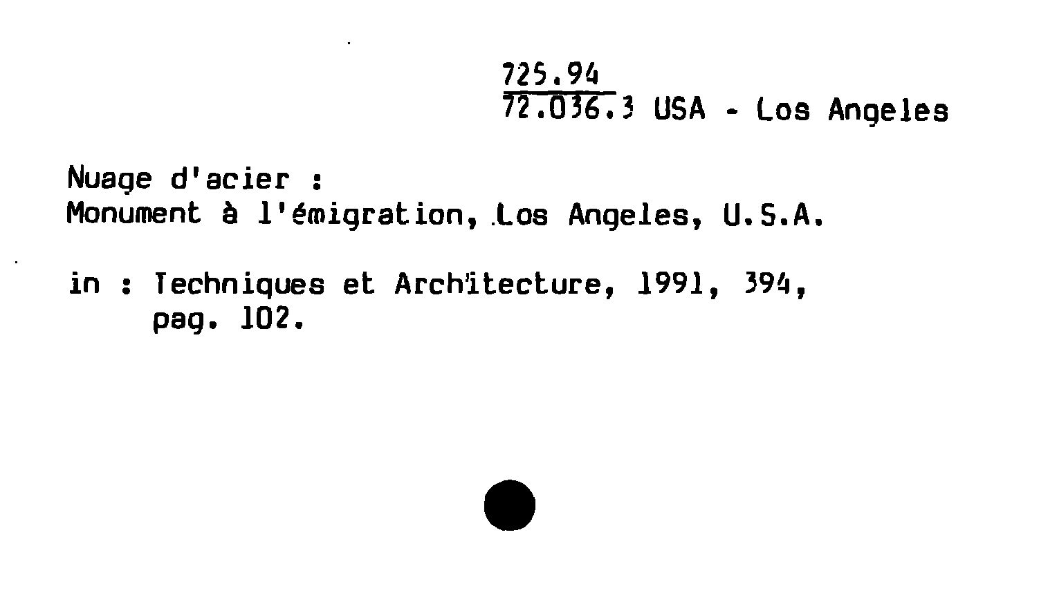 - Nuage d'acier : Monument à l'émigration, Los Angeles, U.S.A