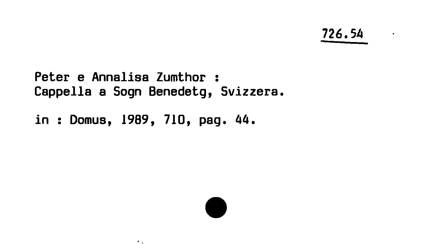 - Peter e Annalisa Zumthor : Cappella a Sogn Benedetg, Svizzera