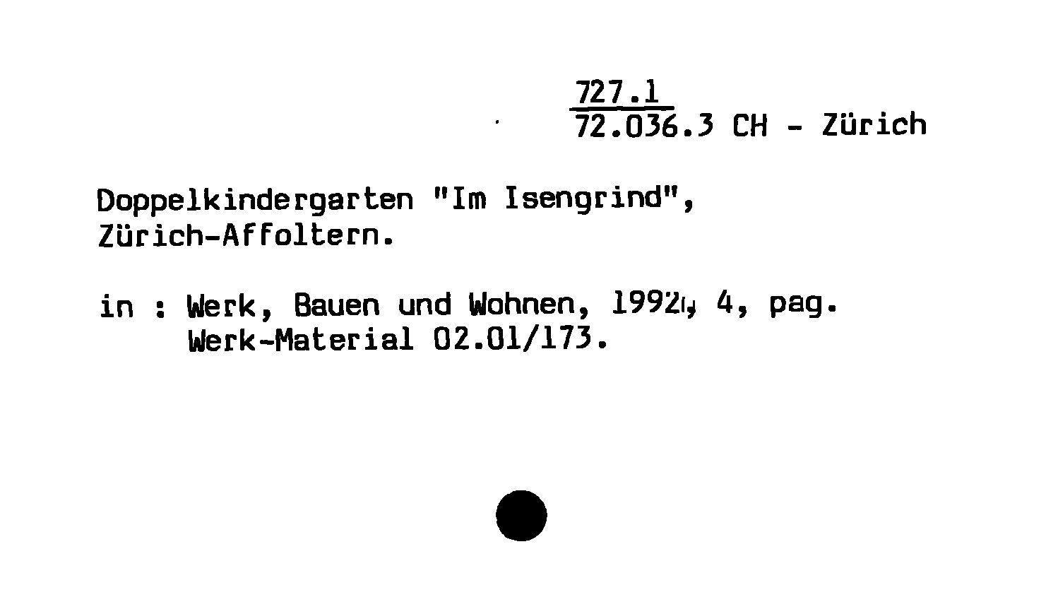 - Doppelkindergarten "lm Isengrind", Zürich-Affoltern