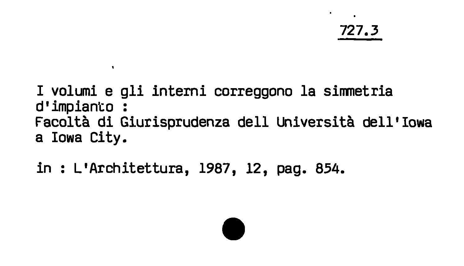 - I volumi e gil interni correggono la simmetria d'impianto : Facoltà di Giurisprudenza dell Università dell'Iowa a Iowa City