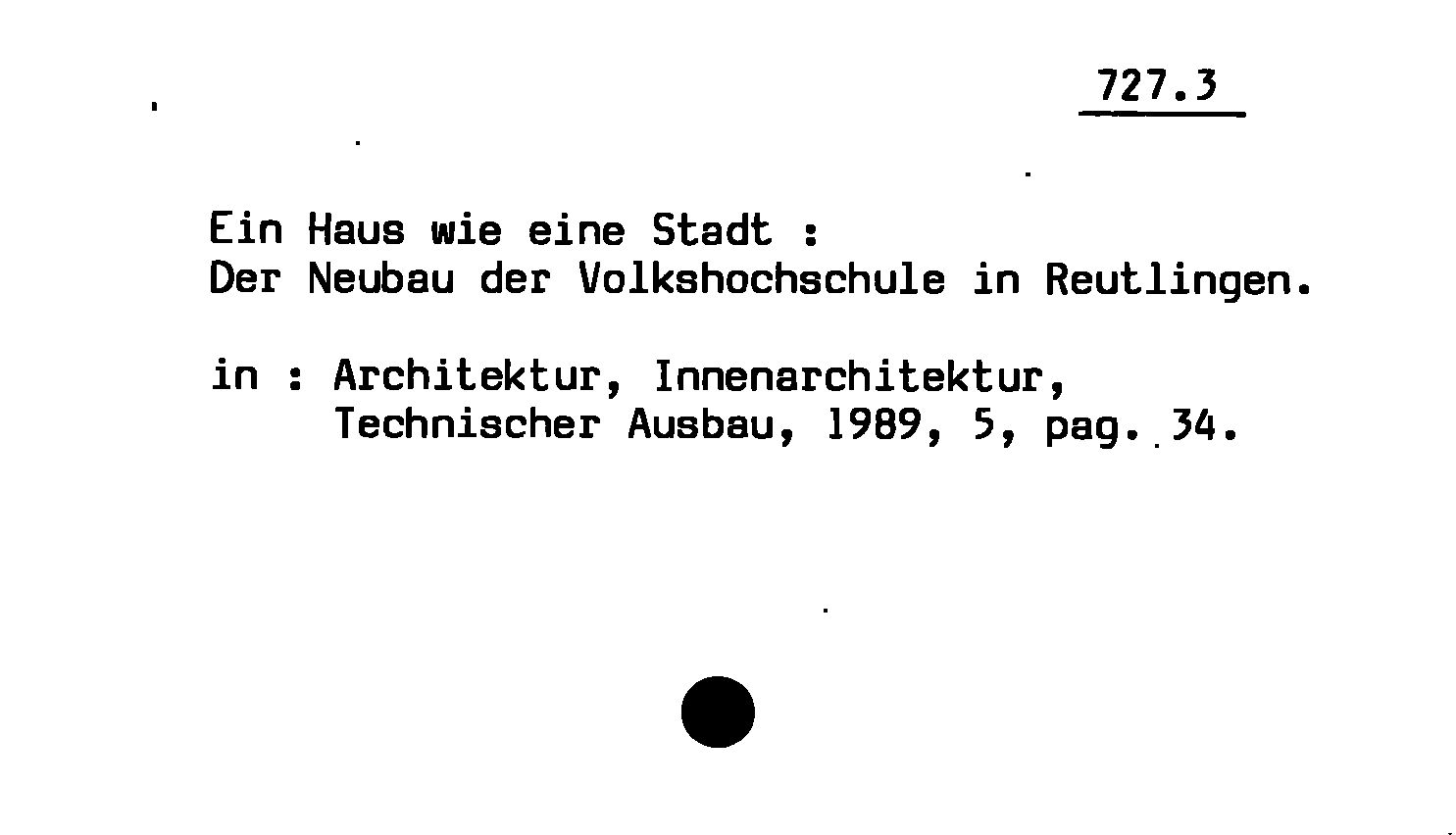 - Ein Haus wie eine Stadt : Der Neubau der Volkshochschule in Reutlingen