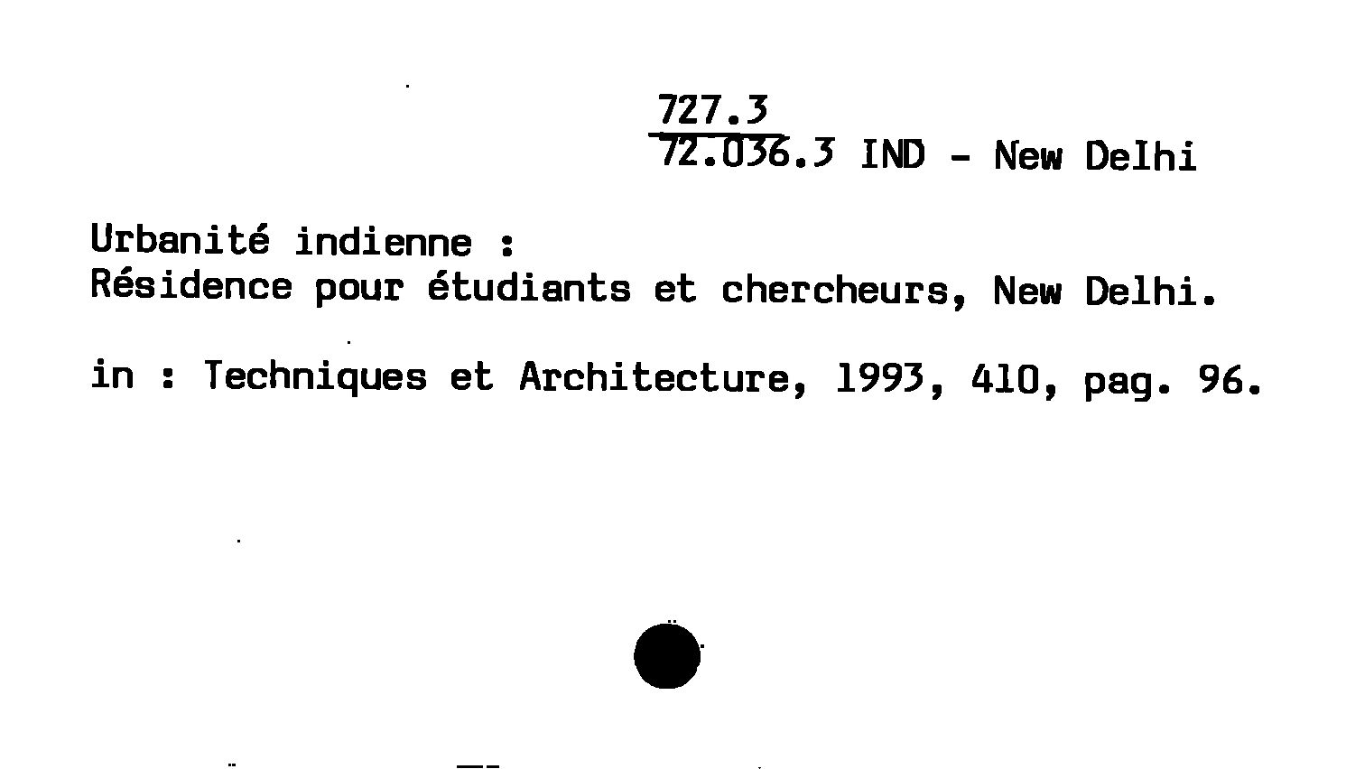 - Urbanité indienne : Résidence pour étudiants et chercheurs, New Delhi