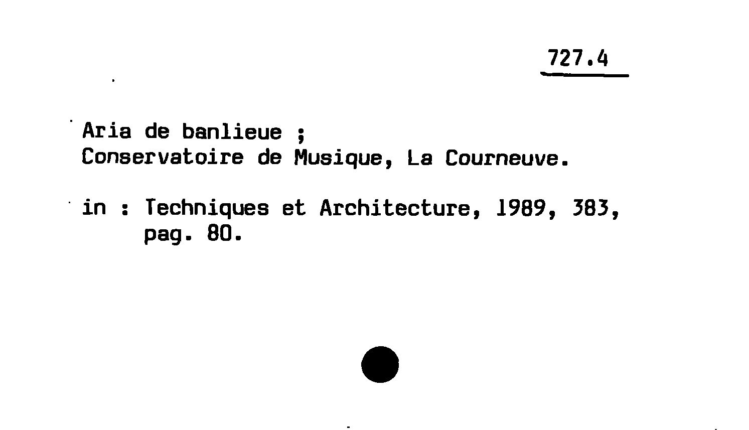 - Aria de banlieue : Conservatoire de Musique, La Courneuve