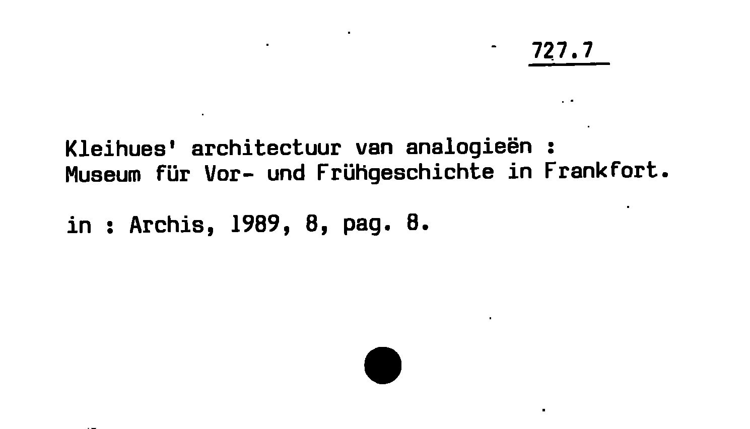 - Kleihues' architectuur van analogieën : Museum für Vor- und Frühgeschichte in Frankfort