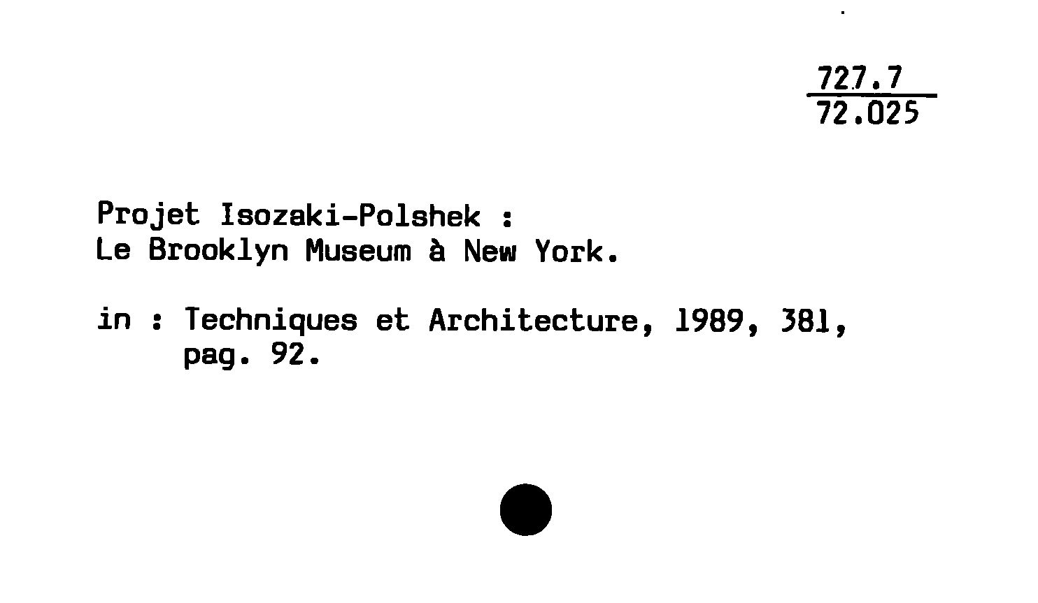 - Projet Isozaki-Polshek : Le Brooklyn Museum à New York