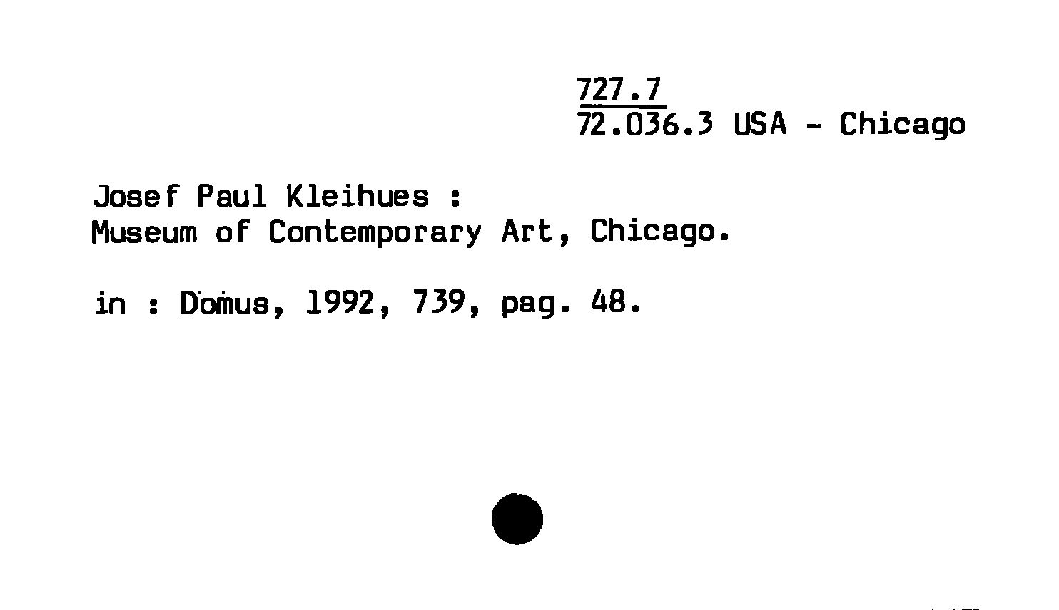 - Josef Paul Kleihues : Museum of Contemporary Art, Chicago
