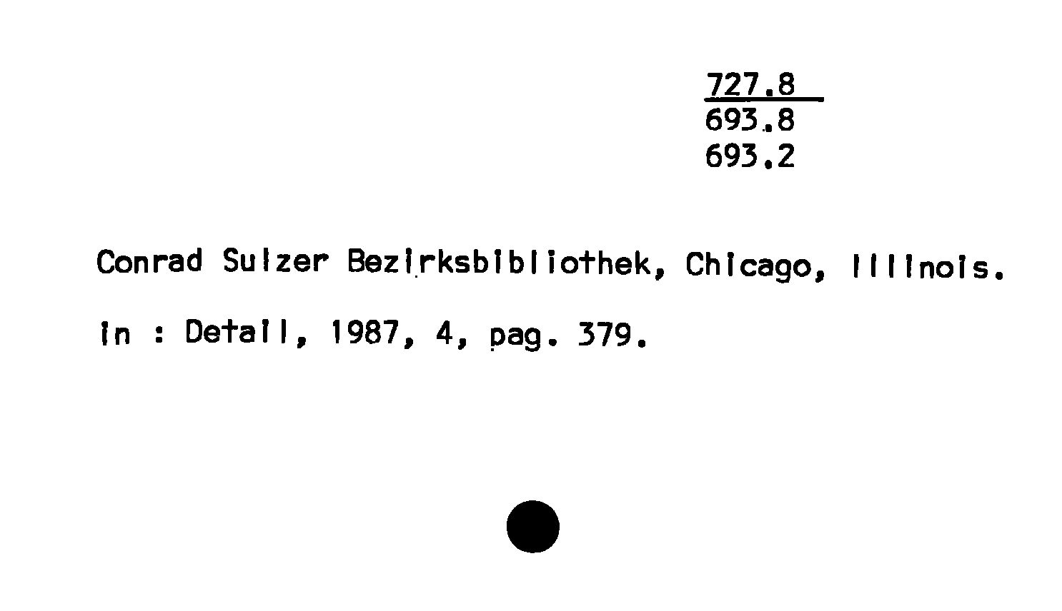 - Conrad Sulzer Bezirksbibliothek, Chicago, Illinois
