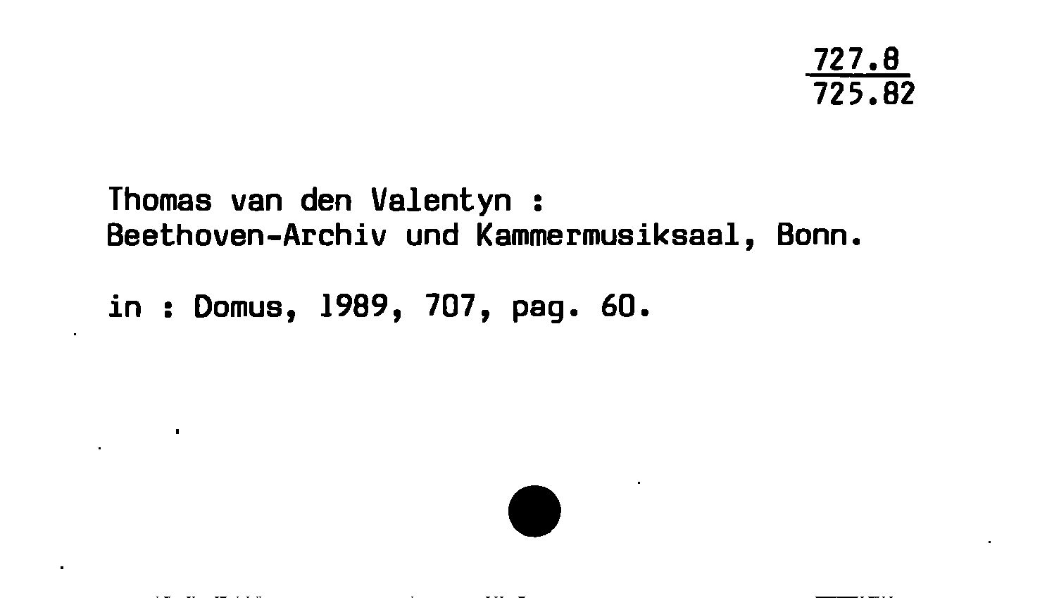 - Thomas van den Valentyn : Beethouen-Archiv und Kammermusiksaal, Bonn