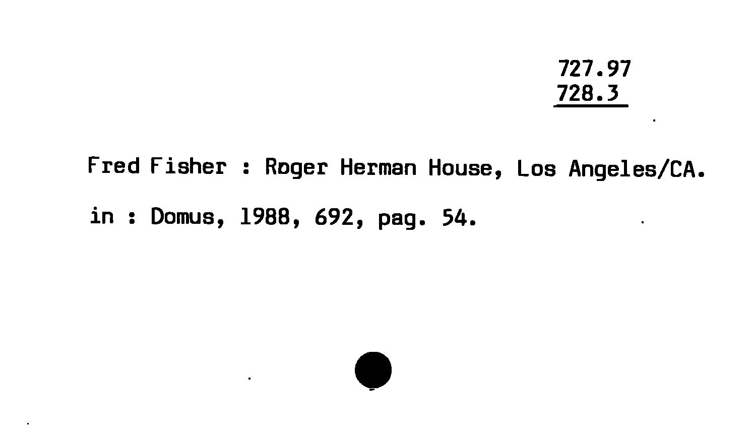 - Fred Fisher : Roger Herman House, Los Angeles/CA