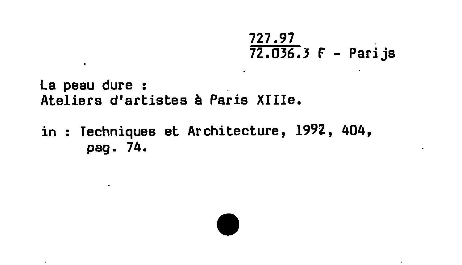- La peau dure : Ateliers d'artistes à Paris XIIIe