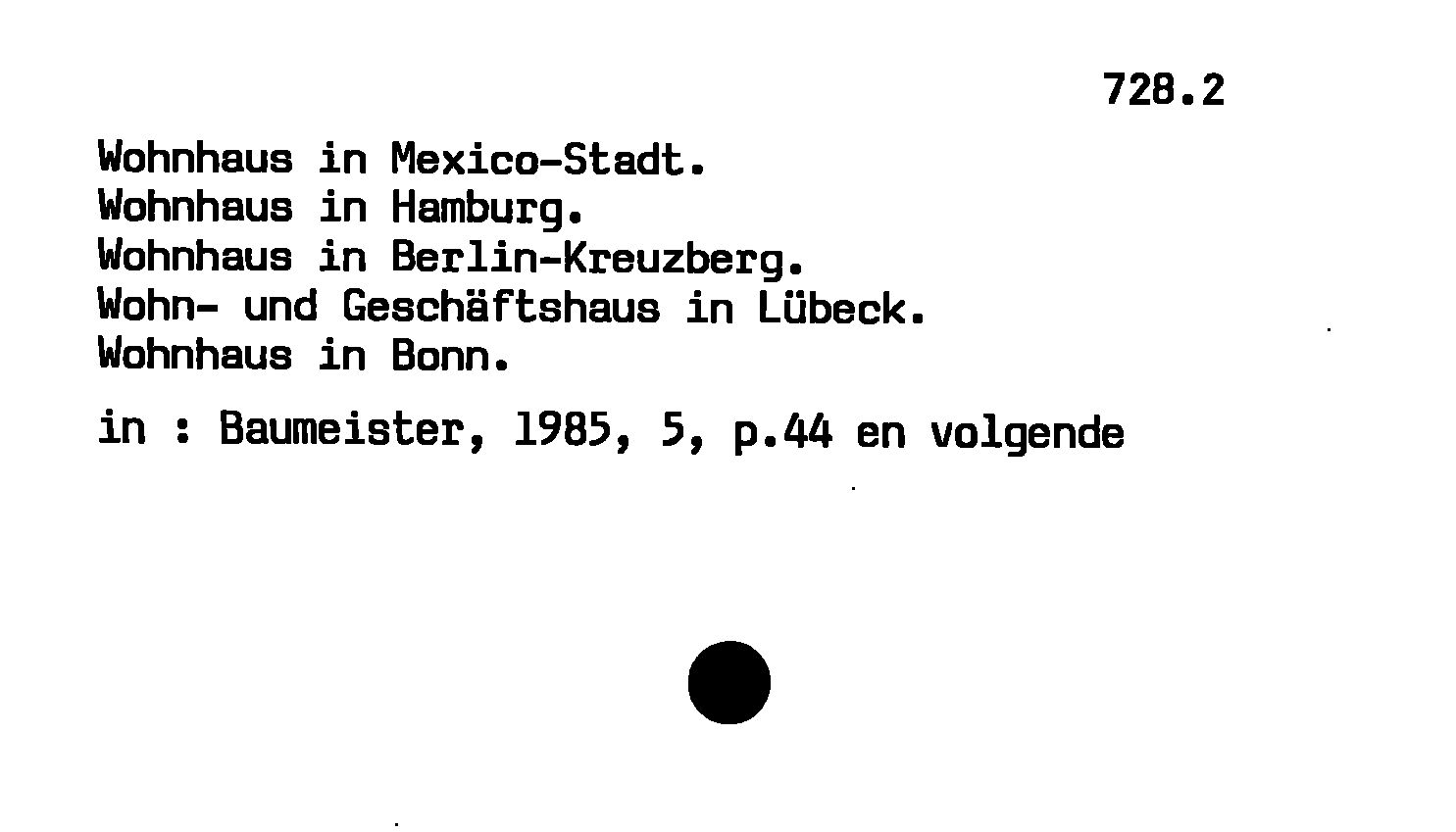 Wohnhaus in Mexico-Stadt. Wohnhaus in Hamburg.Wohnhaus in Berlin-Kreuzberg. Wohn- und Geschäftshaus in Lübeck.Wohnhaus in Bonn