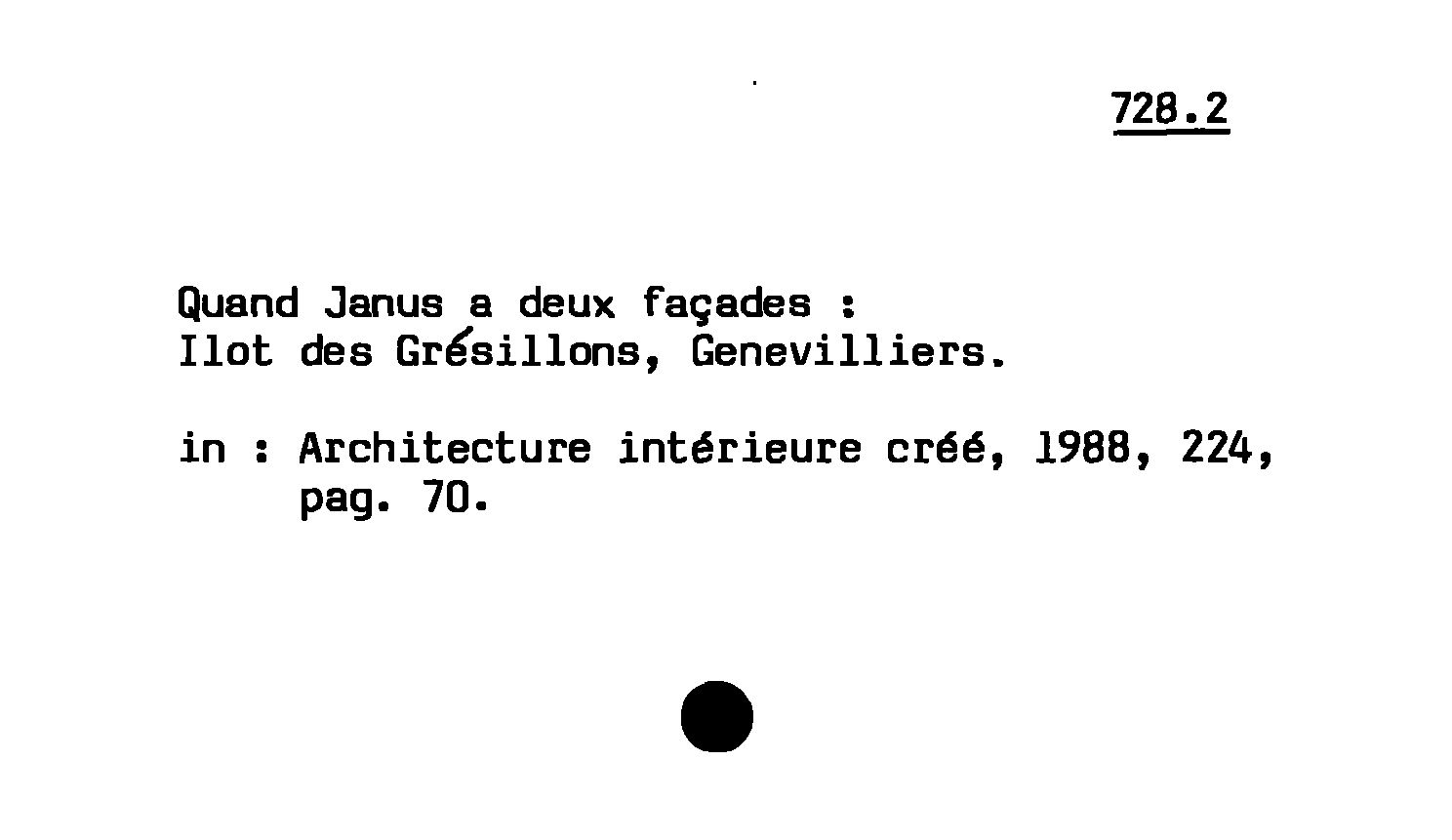 - Quand Janus a deux facades : Ilot des Gresillons, Genevilliers