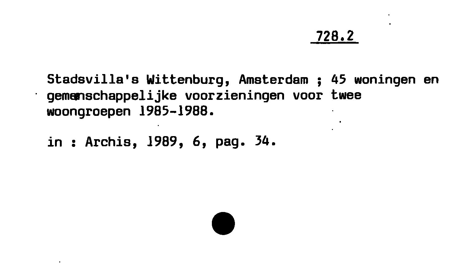 - Stadsvilla's Wittenburg, Amsterdam : 45 woningen en gemeenschappelijke voorzieningen voor twee woongroepen 1985-1988