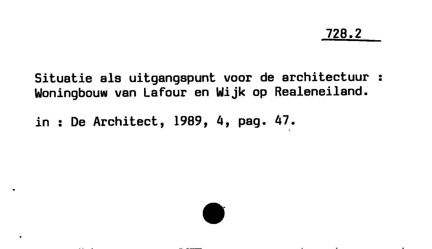 - Situatie als uitgangspunt voor de architectuur : Woningbouw van Lafour en Wijk op Realeneiland