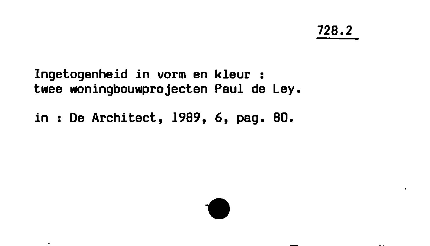 - Ingetogenheid in vorm en kleur : twee woningbouwprojecten Paul de Ley