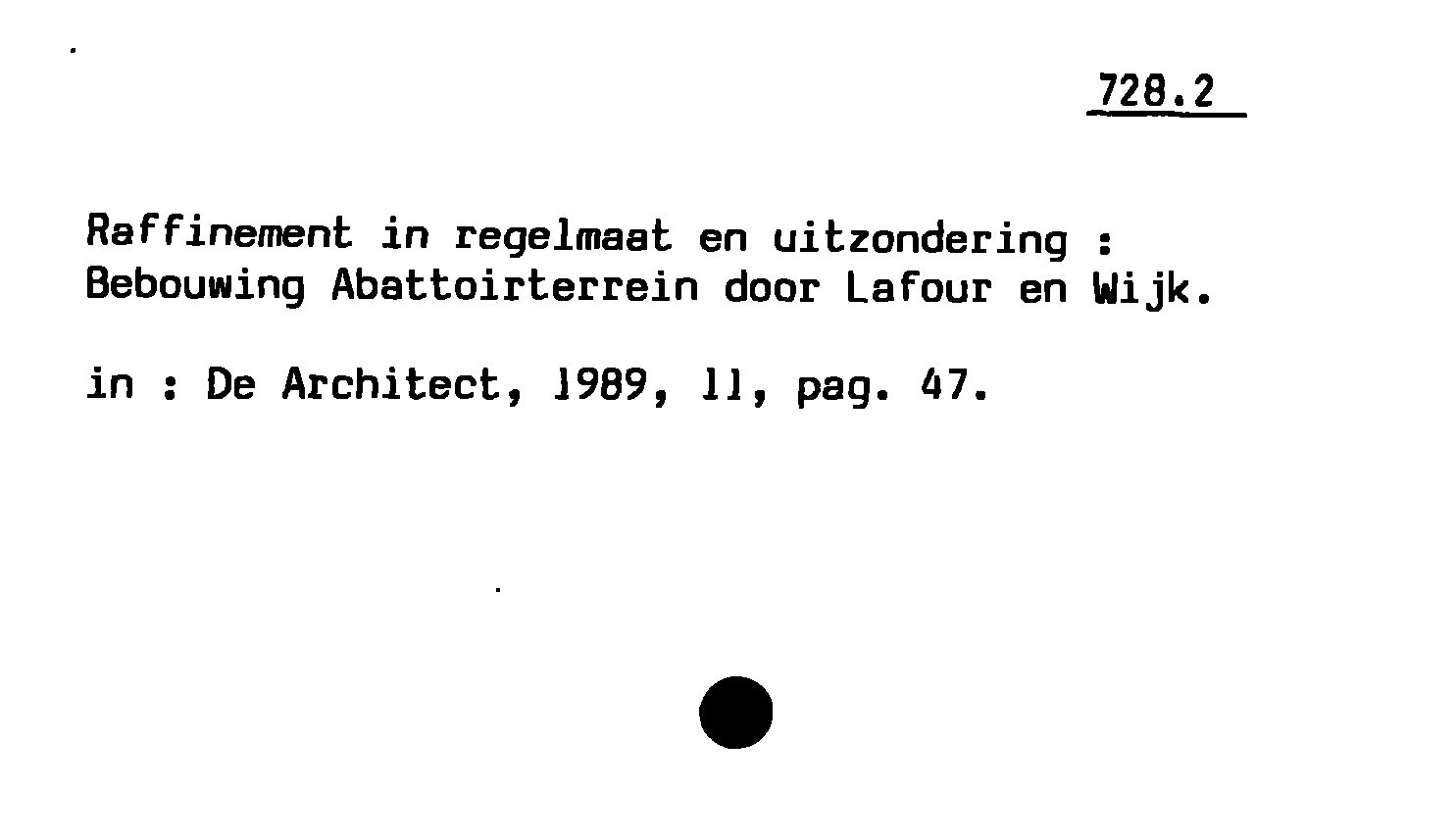 - Raffinement in regelmaat en uitzondering : Bebouwing Abattoirterrein door Lafour en Wijk