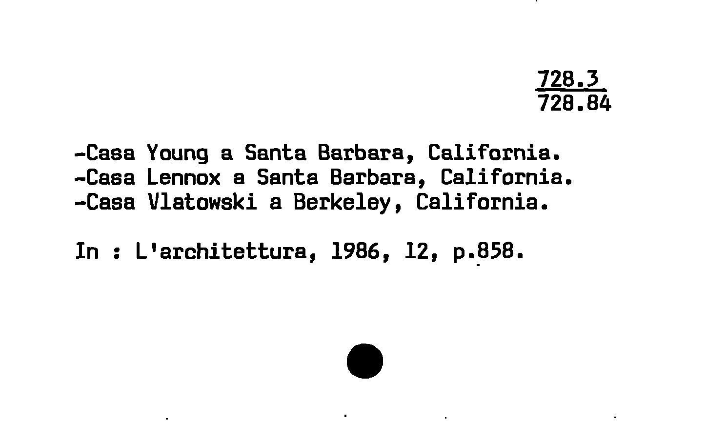 - Casa Young a Santa Barbara, California : Casa Lennox a Santa Barbara, California ; Casa Vlatowski a Berkeley, California