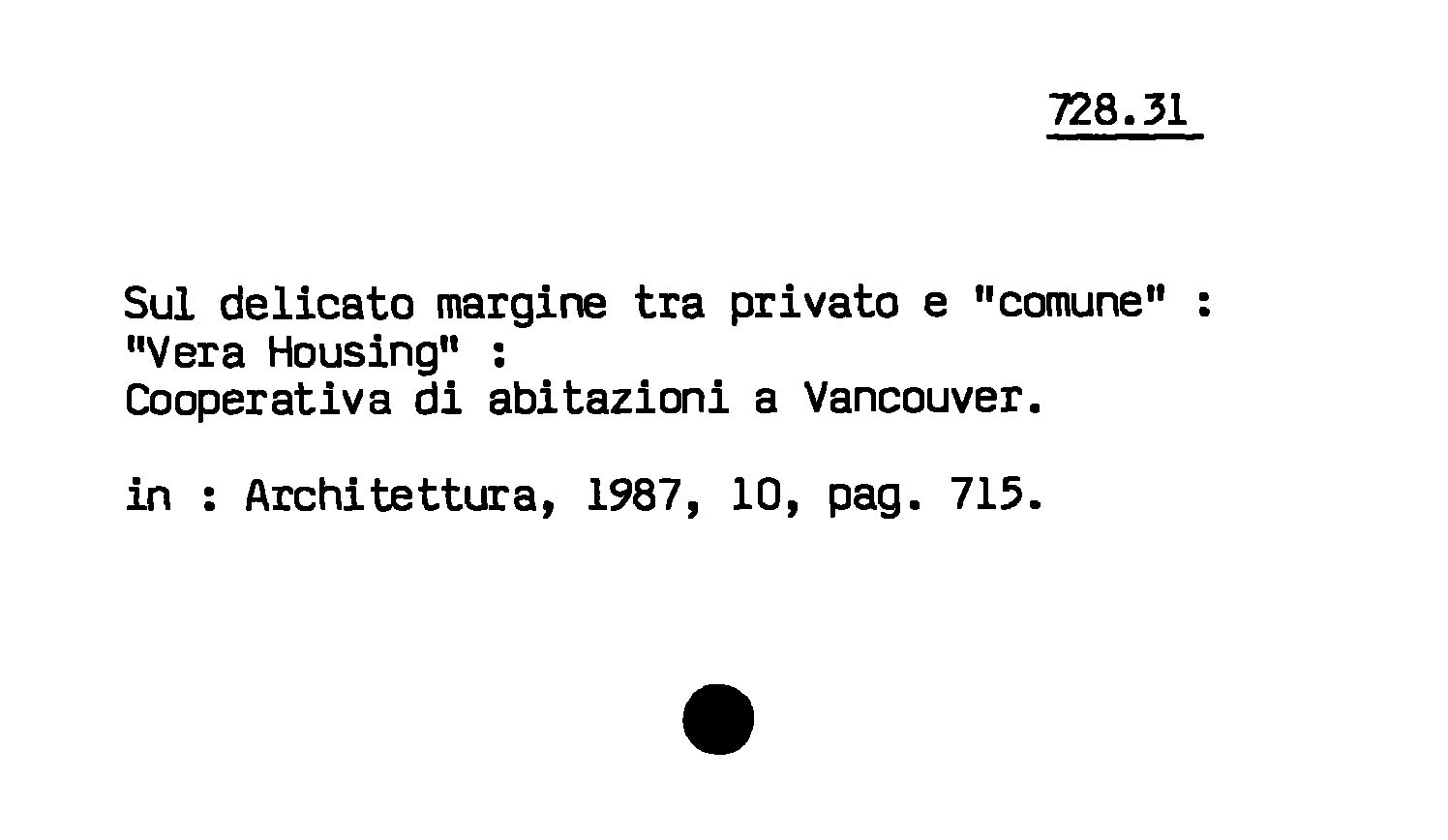 - Sul delicato margine tra private e "comune" : "Vera Housing" ; Cooperativa di abitazioni a Vancouver