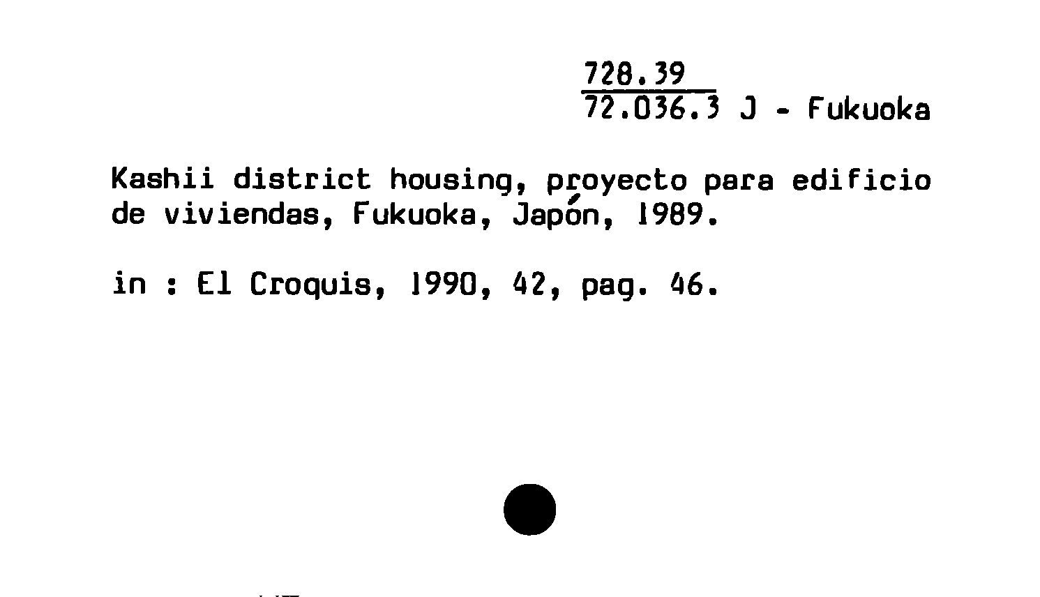 - Kashii district housing, proyecto para edificio de viviendas, Fukuoka, Japon, 1989