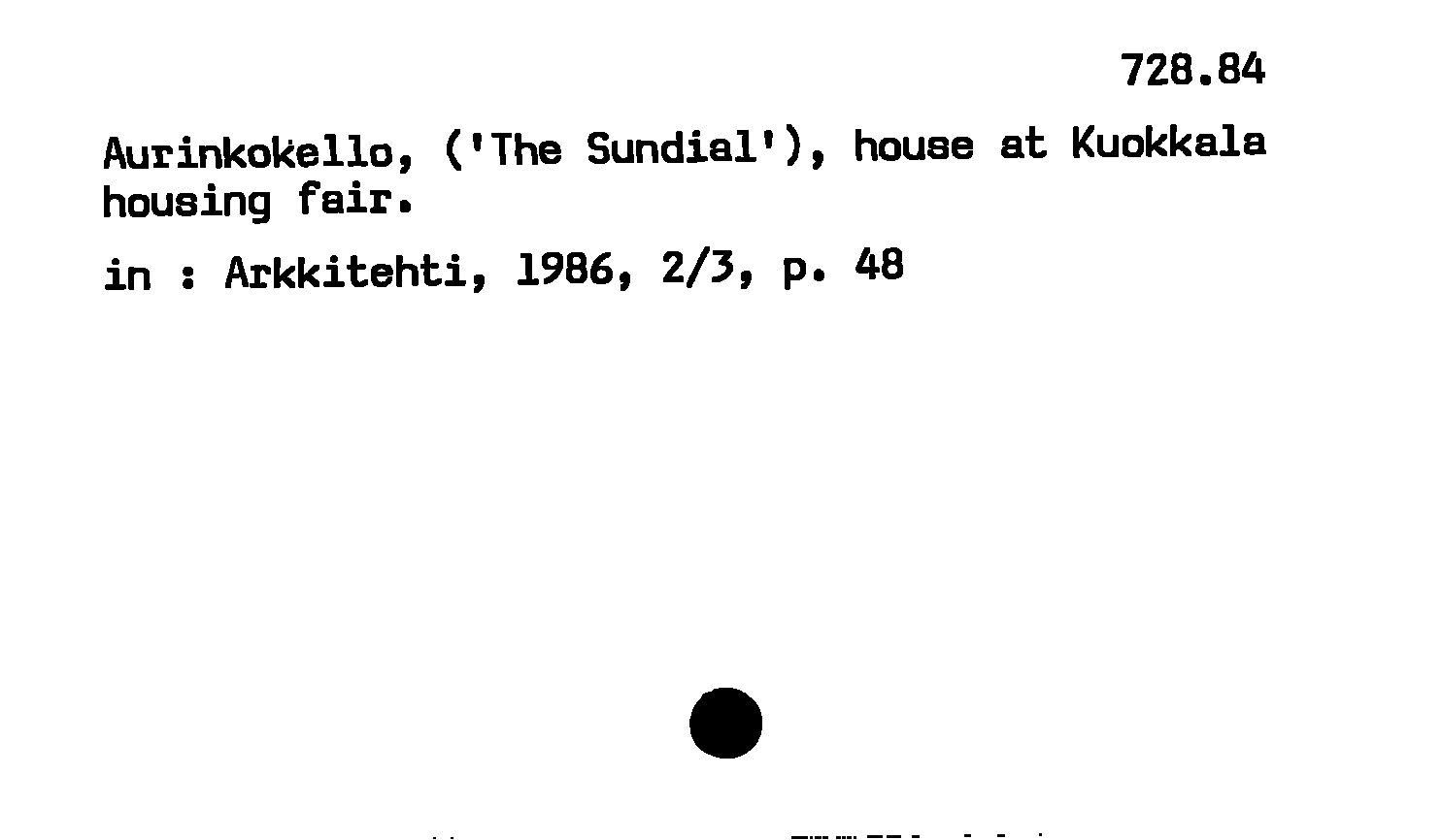 - Aurinkokello, ('The Sundial'), house at Kuokkala housing fair