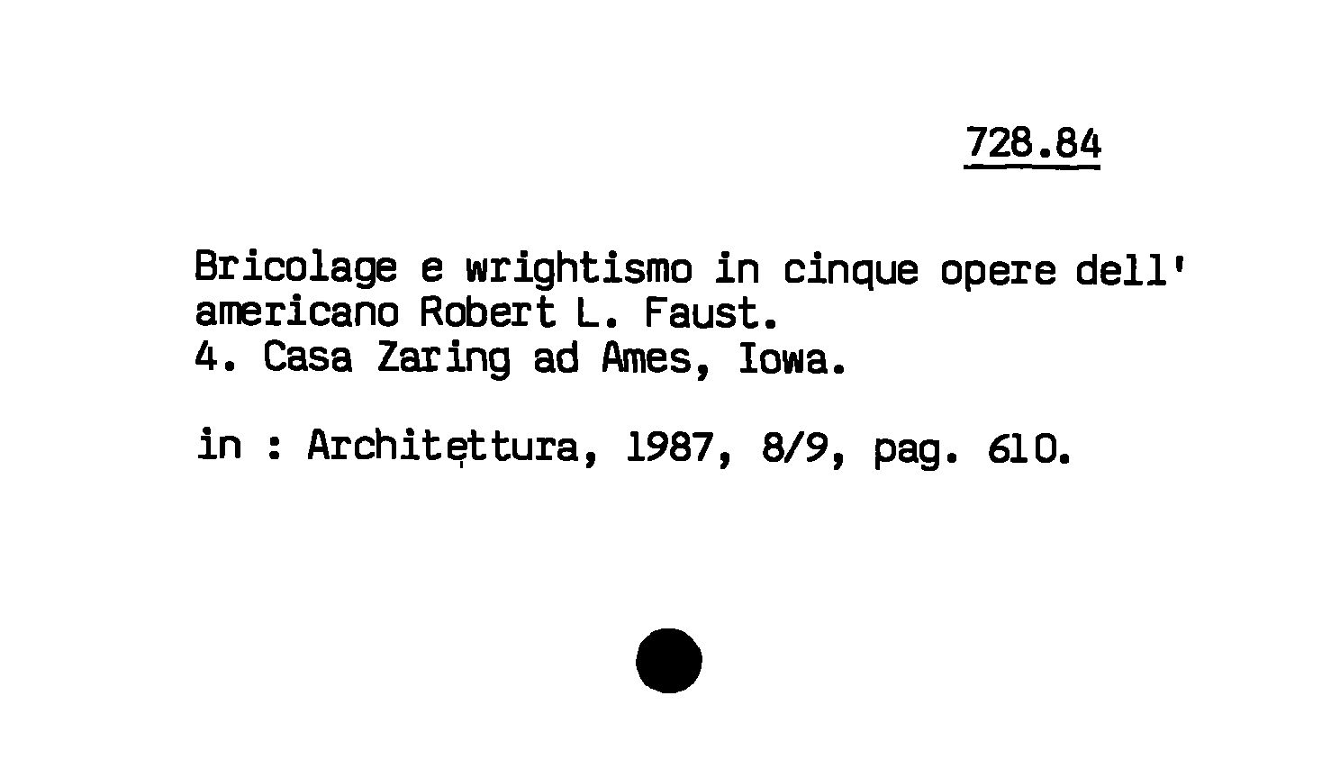 - Bricolage e wrightismo in cinque opere dell'americano Robert L. Faust : 4. Casa Zaring ad Ames, Iowa