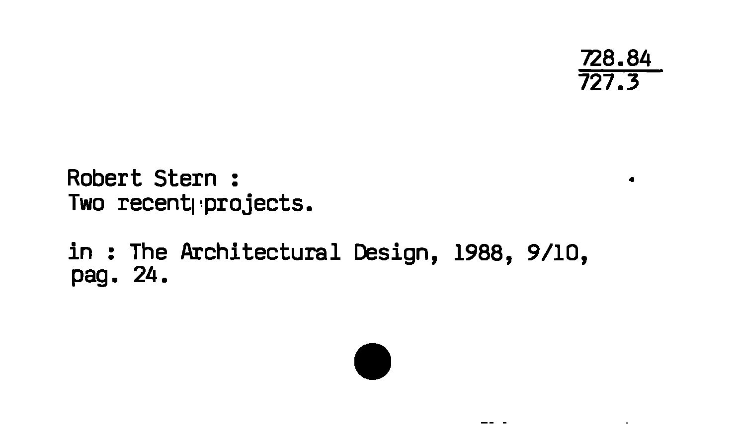 - Robert Stern : Two recent projects