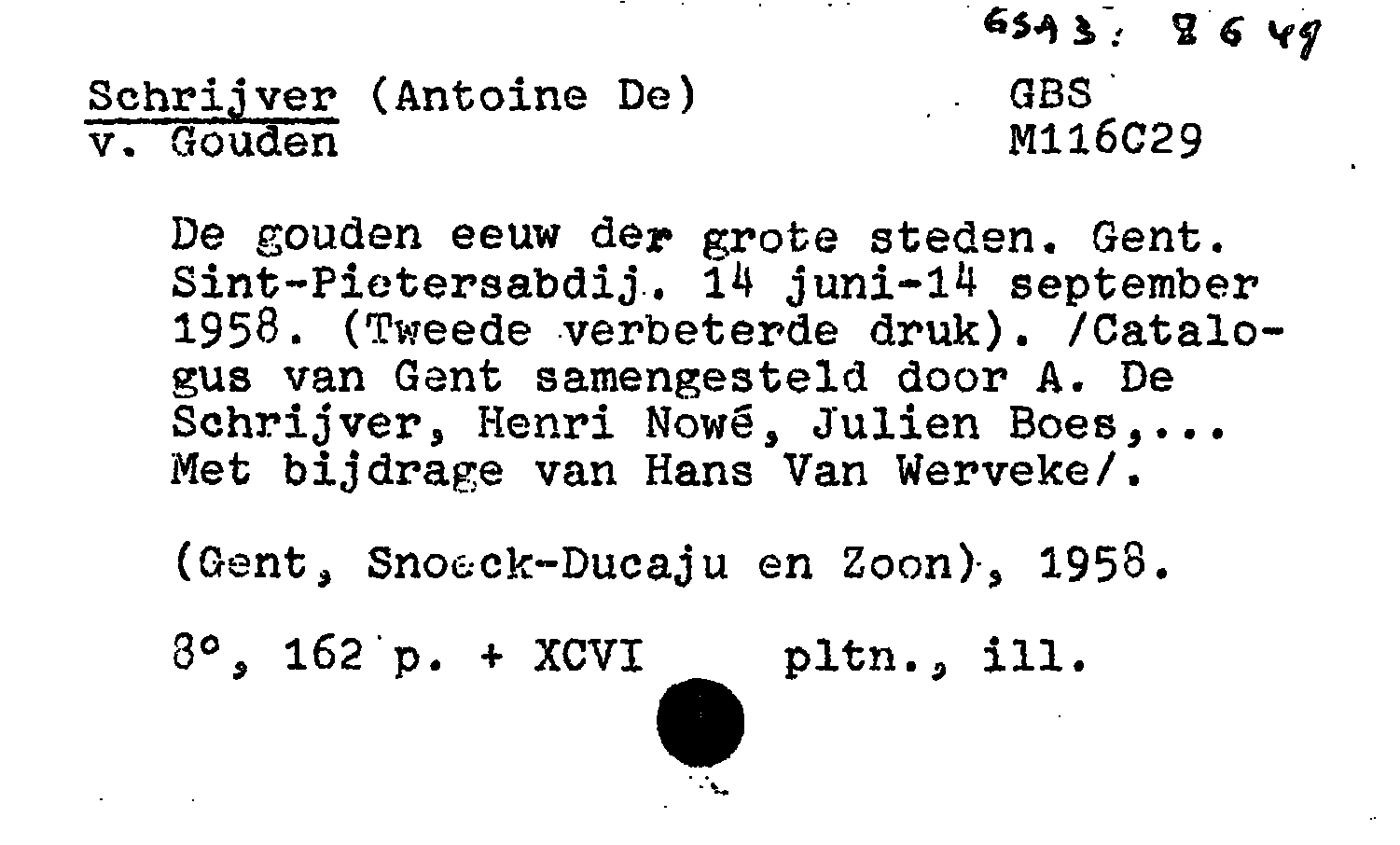 - L'âge d'or des grandes cités catalogue de Gand rédigé par A. De Schrijver, Henri Nowé, Julien Boes, ... Avec contribution de Hans Van Werveke ; préface A. Hacquart.
