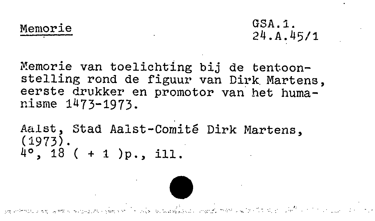 - Memorie van toelichting bij de tentoonstelling rond de figuur van Dirk Martens, eerste drukker en promotor van het humanisme in België 1473 - 1973.
