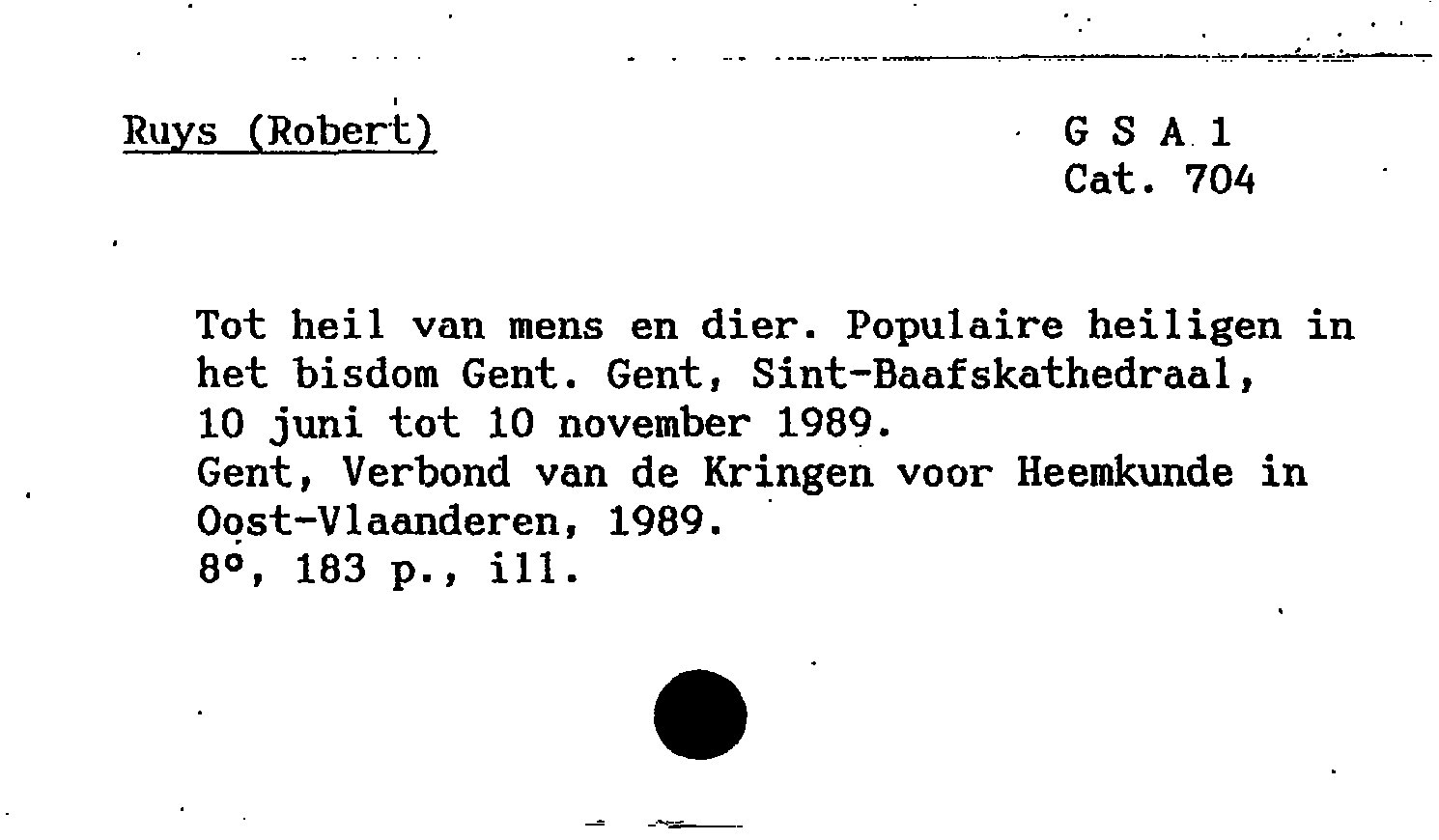 Verschenen naar aanleiding vantentoonstelling ' Volksheiligen in het Bisdom Gent, ter gelegenheid van het zilveren jubileum van Mgr. L.A. Van Peteghem XXVIIIste Bisschop van Gent